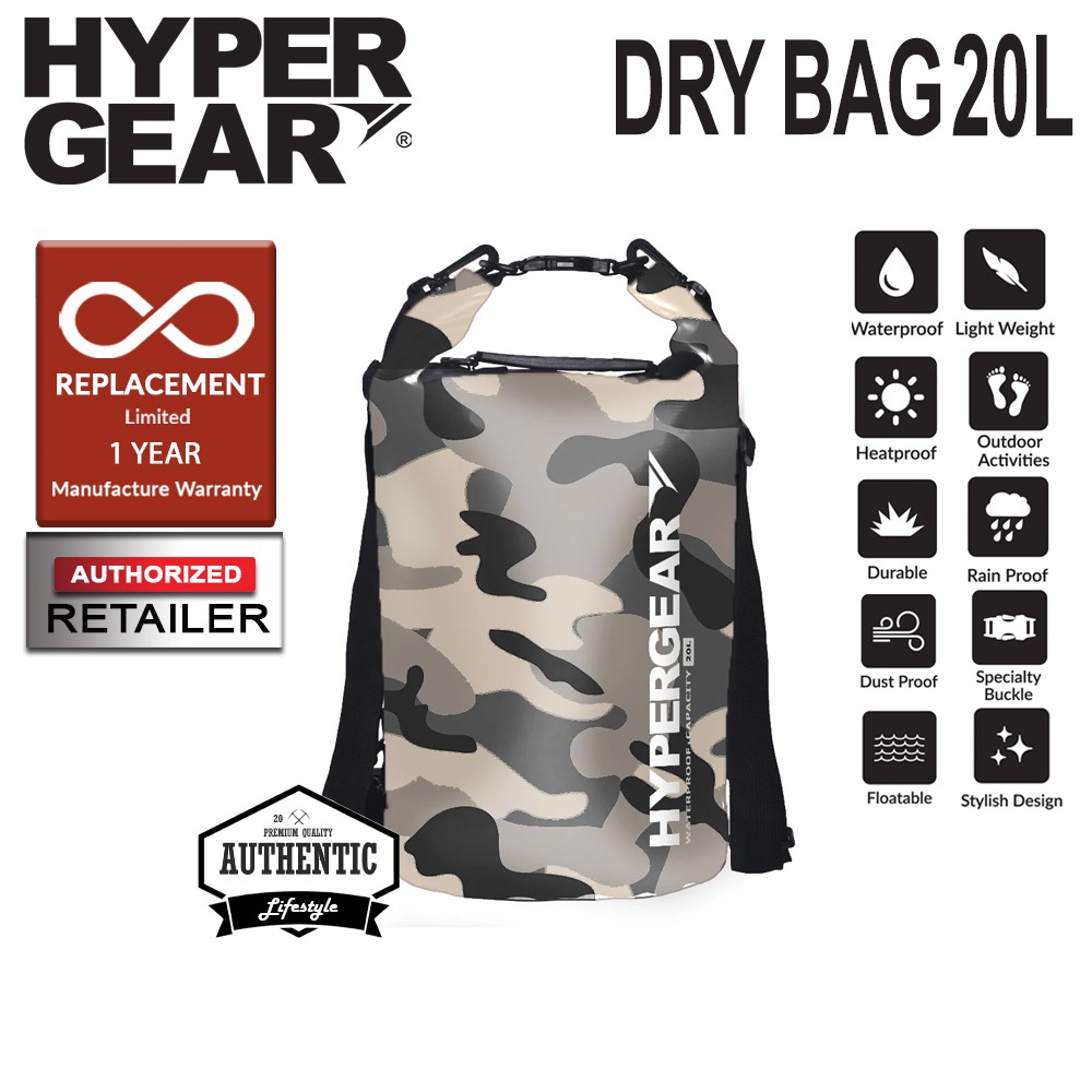 Hypergear 20l Dry Bag Ipx6 Waterproof Specification Camouflage Grey Alpha Shopee Malaysia